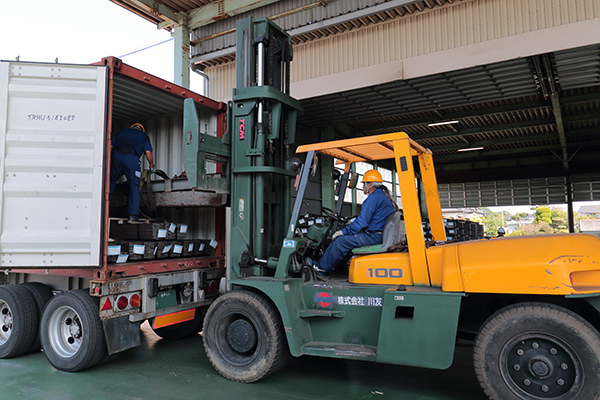 海上コンテナのメリットが、車上受け渡しのシステム。運転手さんが運んで行けば、荷物は現地の担当者様が降ろしてくださいますし、海外から積んできた荷物は倉庫作業員の方が行なってくれます。